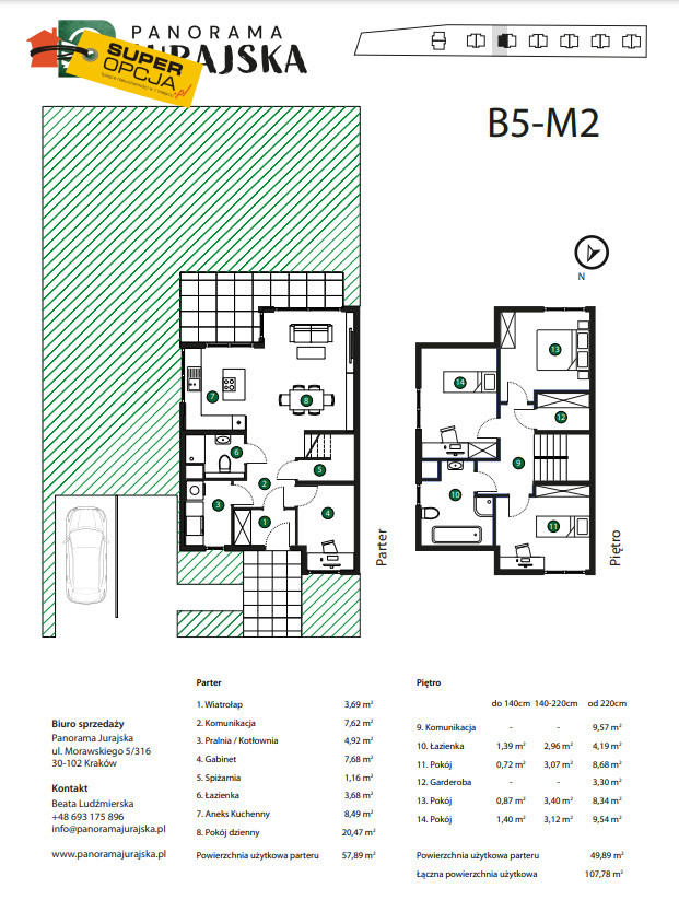2 miejscami parkingowymi. Budynki usytuowane są na szczycie wzniesienia z
