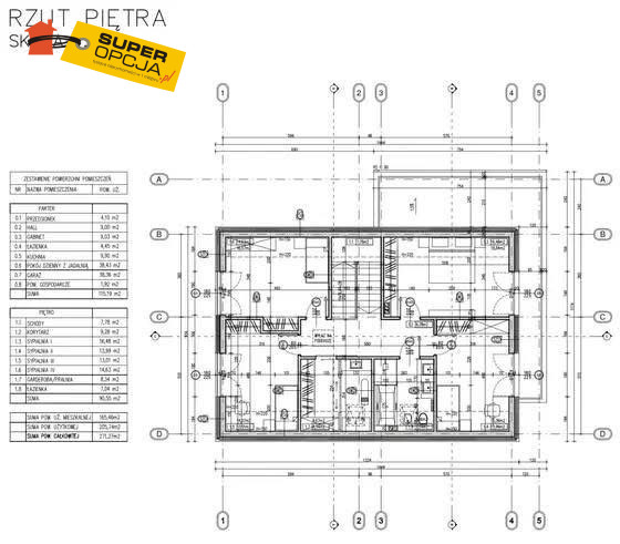 • Piętro: 4 sypialnie, garderoba/pralnia, łazienka, 2 balkony