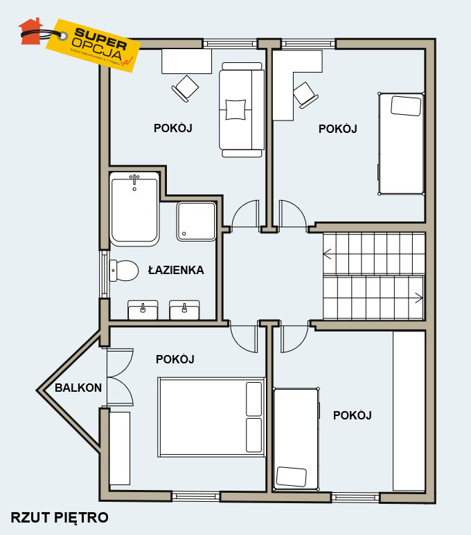 Układ pomieszczeń: Parter: przestronny salon z aneksem kuchennym i wyjściem do ogrodu wspaniałe miejsce na relaks, łazienka, pokój (idealny na biuro lub gościnny), wiatrołap i praktyczna garderoba/spiżarnia. Piętro: komfortowa sypialnia, dwa dodatkowe pokoje oraz łazienka z wanną i prysznicem. Dodatkowo wyjście na nieużytkowy strych - idealny na przechowywanie! Powierzchnia 132,5m2, budynek z 2015 roku!