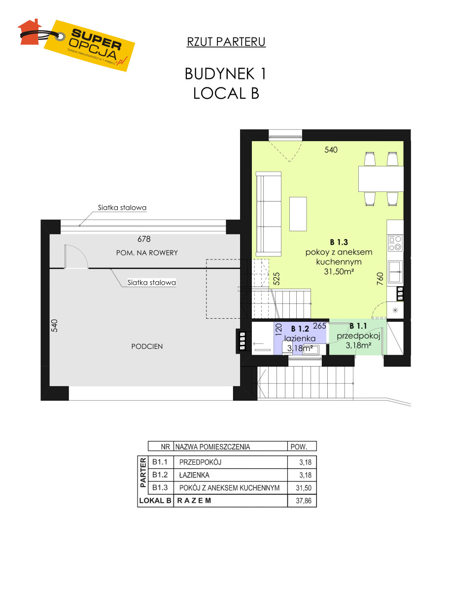 - Możliwość aranżacji biura lub gabinetu z osobnym wejściem,