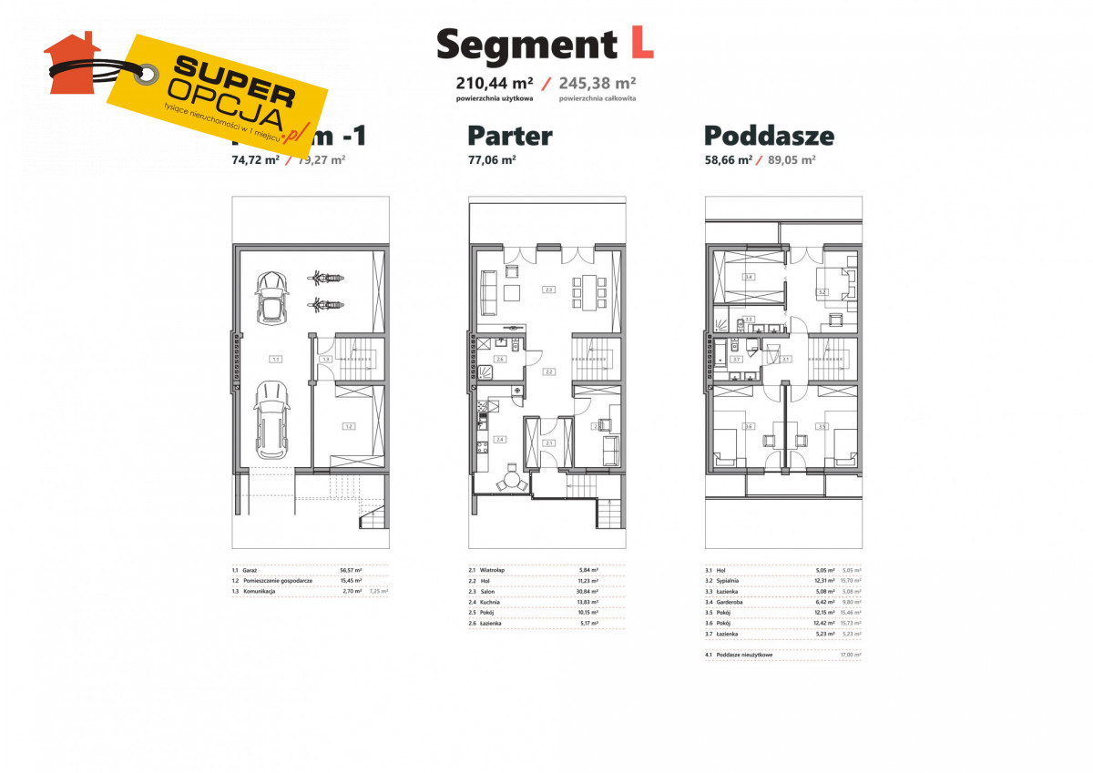Poziom -1: - duży garaż (56m2) - pomieszczenie gospodarcze