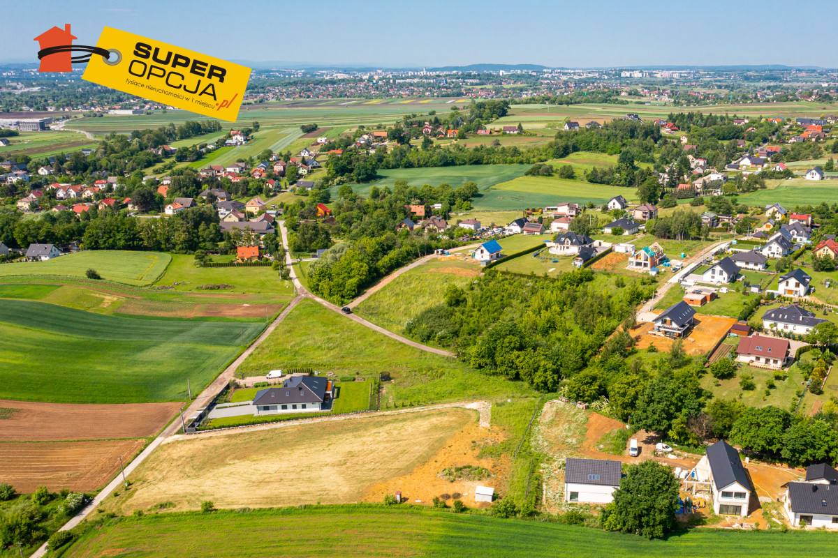 Dostępne powierzchnie działek: -9,24ar -9,24ar -10,60ar -10ar (cena w gołoszeniu dotyczy działek o powierzchni 9,24ar) Malownicze położenie w cichej i spokojnej okolicy. Dojazd 10 min do nowych węzłów S7 i Północnej Obwodnicy Krakowa.