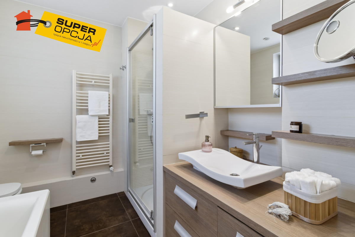 Komfort: 2 nowoczesne łazienki (jedna z wanną, druga z kabiną prysznicową).