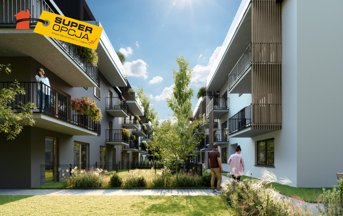 Przestronne mieszkanie o pow. 45.95 m², na parterze z ogródkiem w nowoczesnym budynku wielorodzinnym. Położone w południowej części Krakowa.