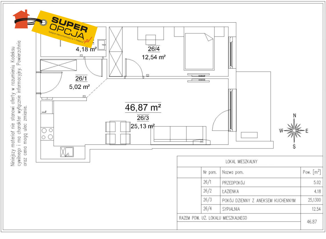 790 000,00 PLN , Pow. 46,87 m2
