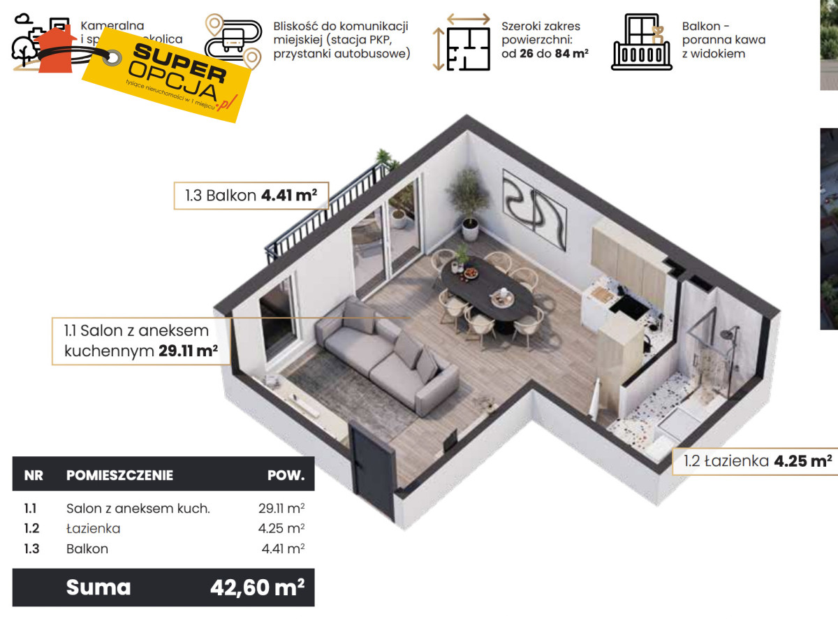 Lokalizacja: - Szybka Kolej Miejska - szybkie połączenie z Centrum - przystanek MPK - wyjazd na A4 - wyjazd na Zakopiankę i do Centrum - Tu Będzie Metro - szkoły, przedszkola, usługi