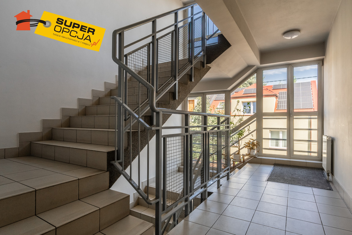 Położone na I piętrze w kameralnym budynku w otoczeniu zabudowy domów jednorodzinnych.