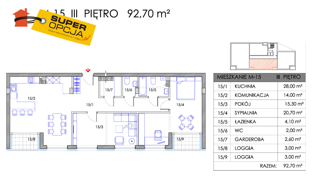 3 niezależne sypialnie (z możliwością aranżacji nawet 4 pokoi),