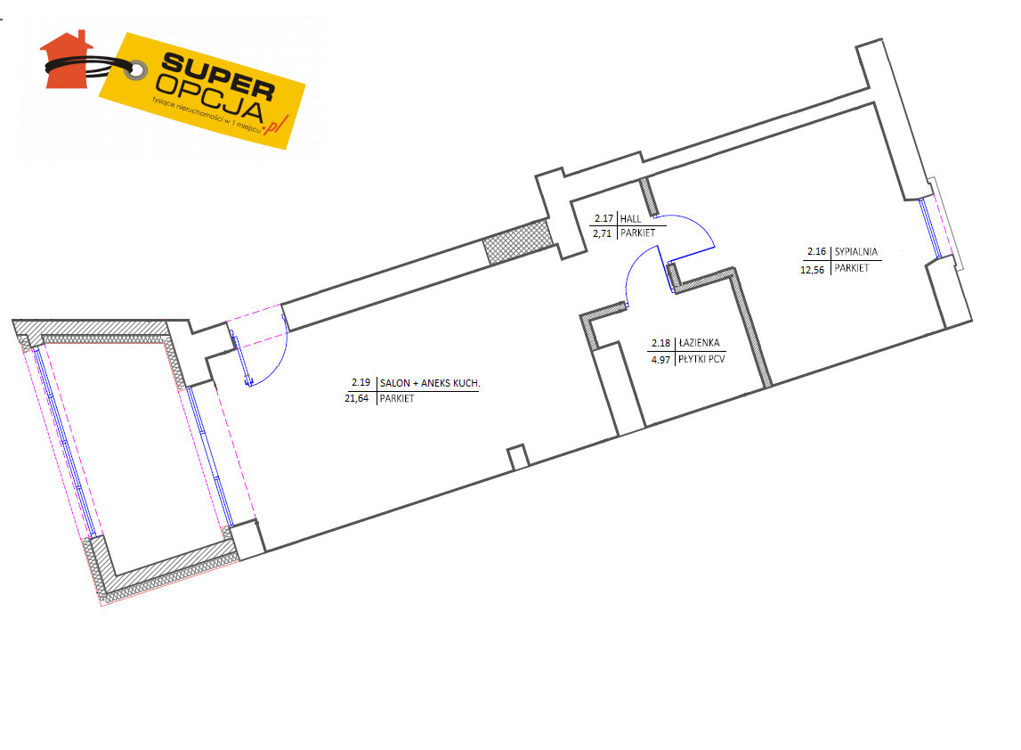 Mieszkanie: - salon z aneksem kuchennym - sypialnia - łazienka - klimatyzacja - MPEC - balkon typu loggia (6-7m)