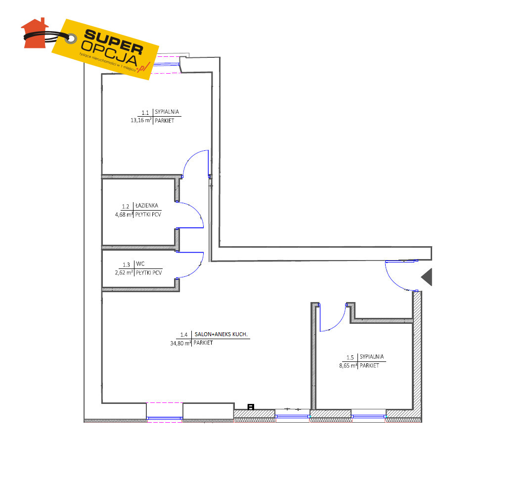 Mieszkanie: - salon z aneksem kuchennym - 2 sypialnie - łazienka - toaleta - przedpokój - klimatyzacja - MPEC