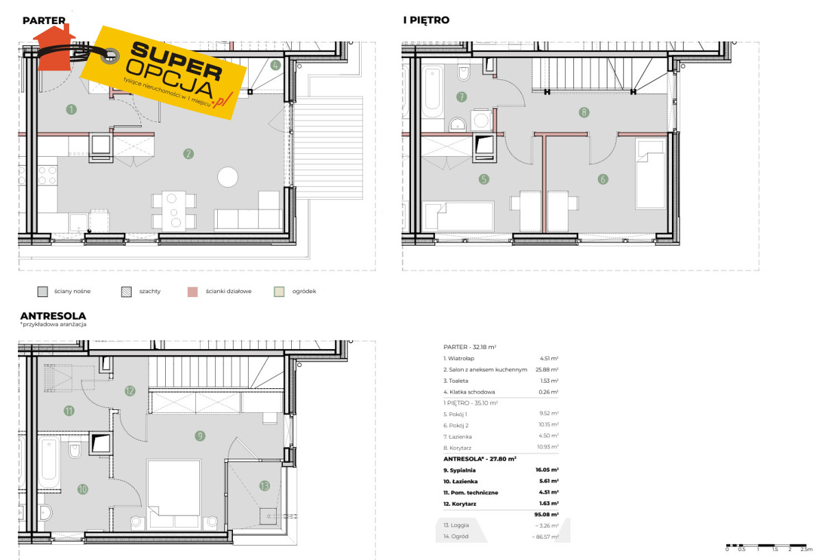 Willa: - trzykondygnacyjna - z własnym ogródkiem i loggią - główne sypialnie z własną łazienką i garderobą - pomieszczenia gospodarcze - pralnia - łazienka na każdym poziomie - ogródek 86 m2