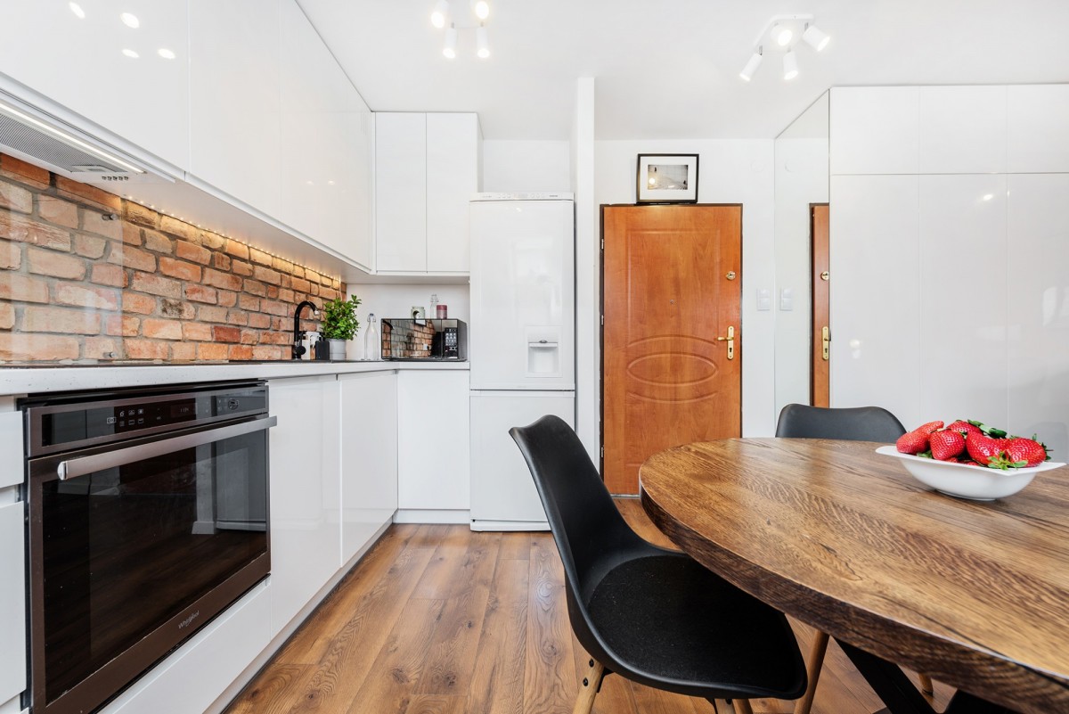 W 2021 roku mieszkanie przeszło generalny remont przeprowadzony „pod siebie”. Postawiono na wysoką jakość i maksymalne wykorzystanie przestrzeni. Dzięki licznym, estetycznym zabudowom stałym, wnętrze jest niezwykle pojemne, zachowując przy tym lekkość i nowoczesny charakter.