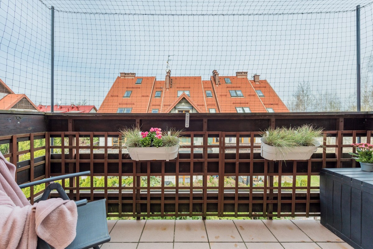 Formalna powierzchnia użytkowa wynosi 43,06 m², natomiast powierzchnia liczona po podłodze (wraz z zaadaptowanym poddaszem) to ok. 60 m². Dodatkową przestrzeń do przechowywania stanowi duża, sucha piwnica - idealna na rowery, wózki czy sprzęt sezonowy.