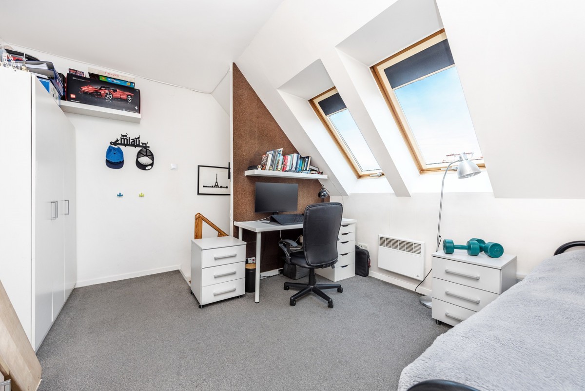 Szukasz nieruchomości, która wykracza poza ramy standardowego, dwupokojowego mieszkania? Przy ul. św. Barbary w Wieliczce znajduje się lokal, który dzięki przemyślanej adaptacji poddasza oferuje aż trzy poziomy i wyraźny podział na strefę dzienną, sypialnianą oraz biurową.