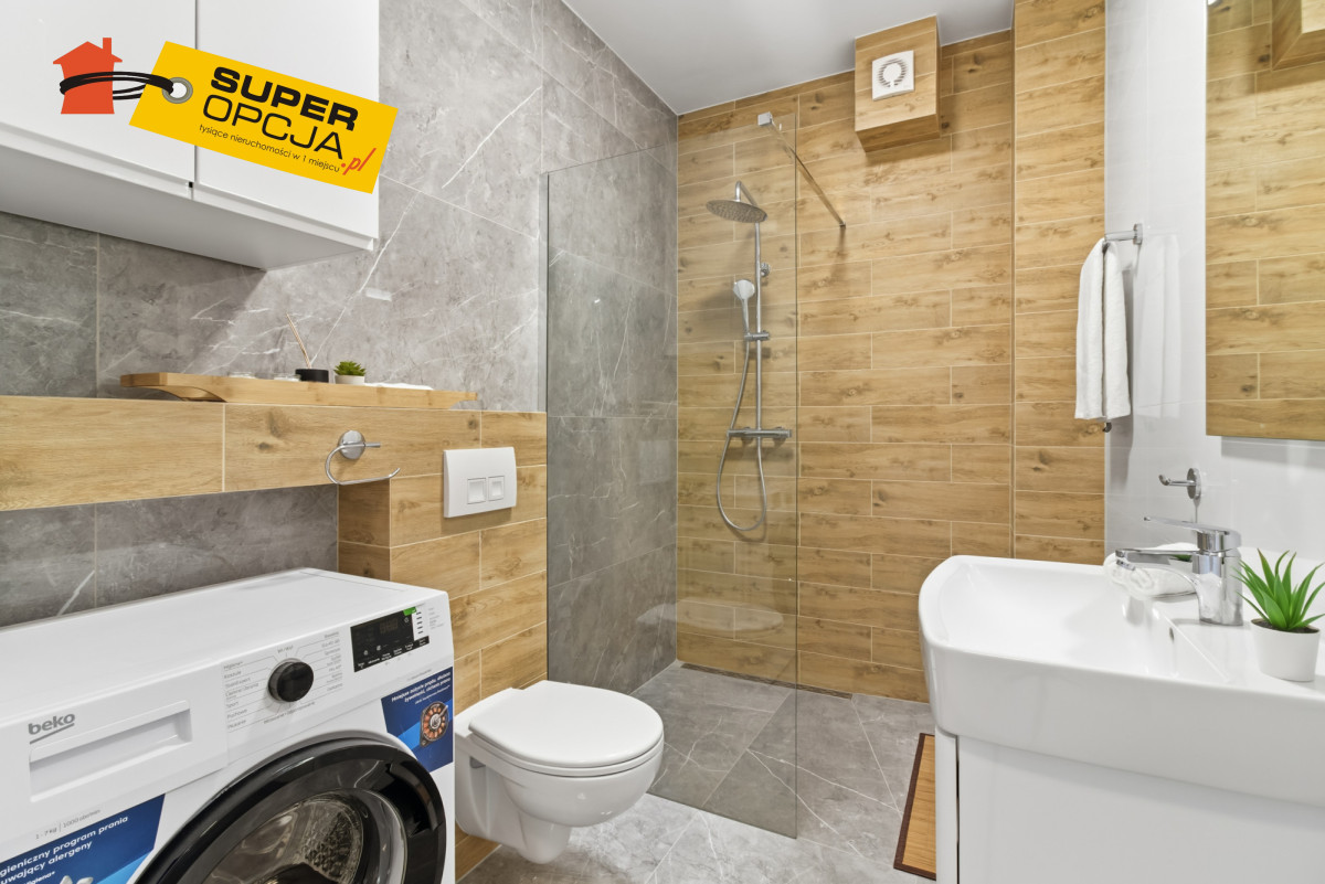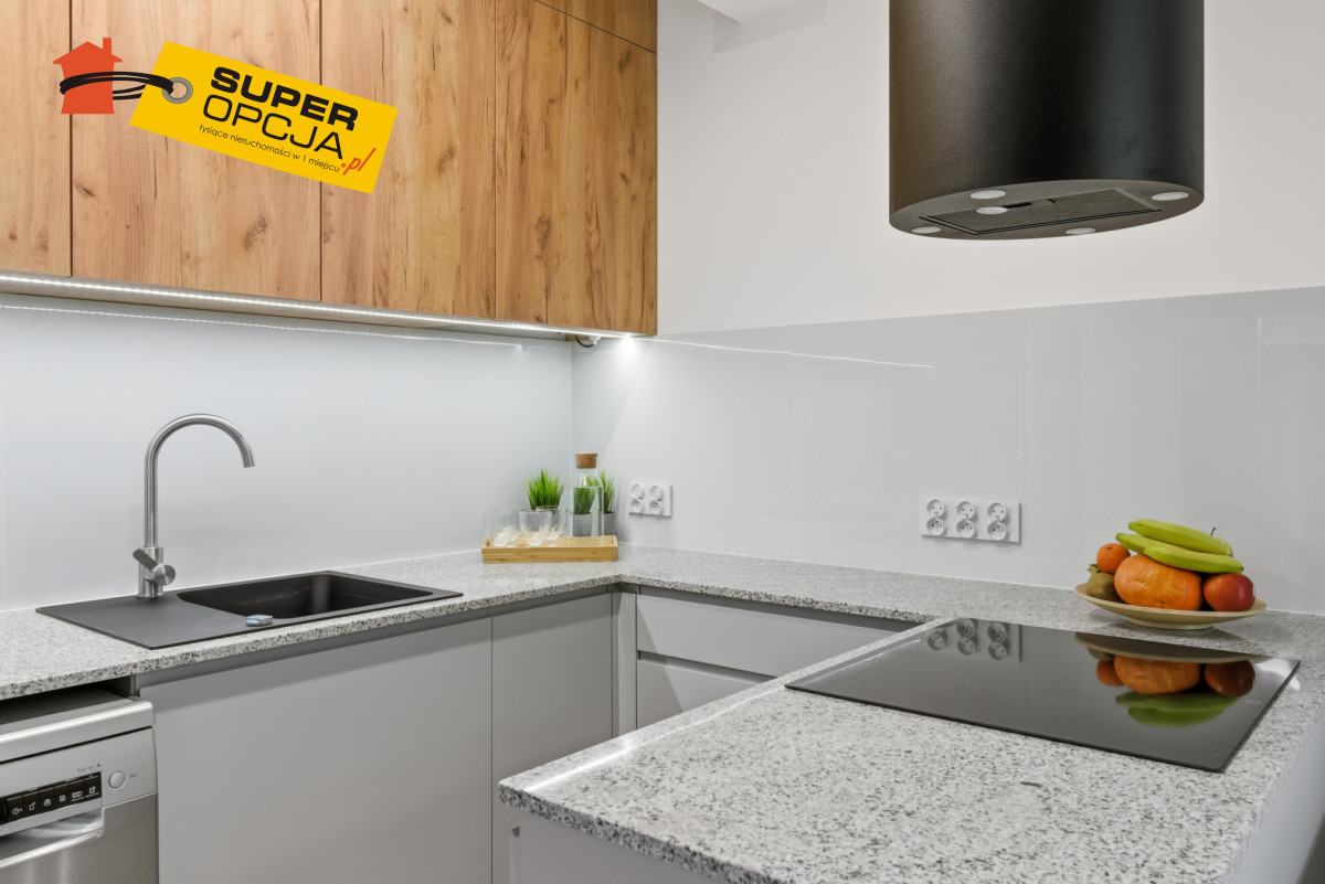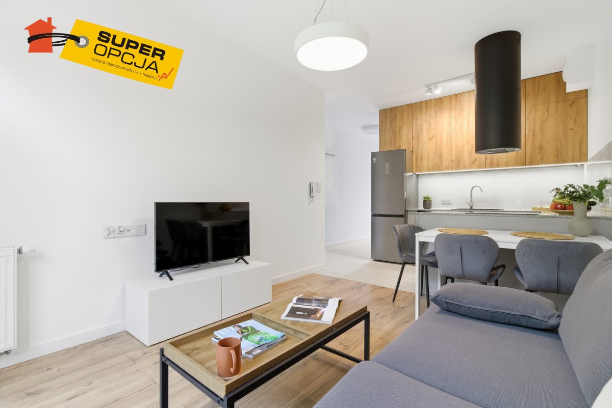 W pełni wyposażone mieszkanie składa się z :- Salonu z aneksem kuchennym: płyta indukcyjna, zmywarka, lodówka z zamrażarką, TV, meble, sofa