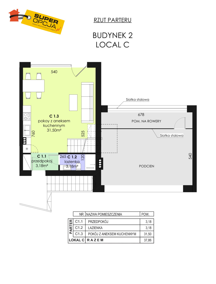 - Możliwość aranżacji biura lub gabinetu z osobnym wejściem,