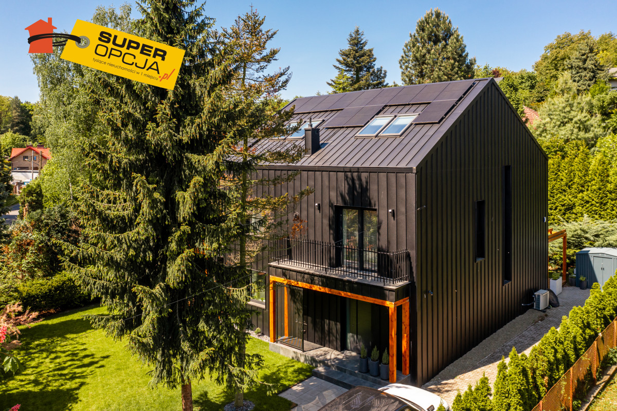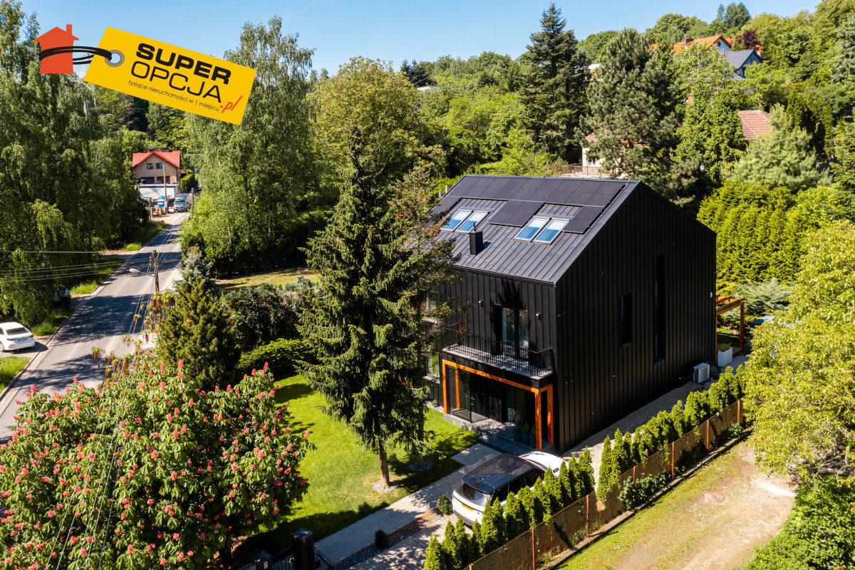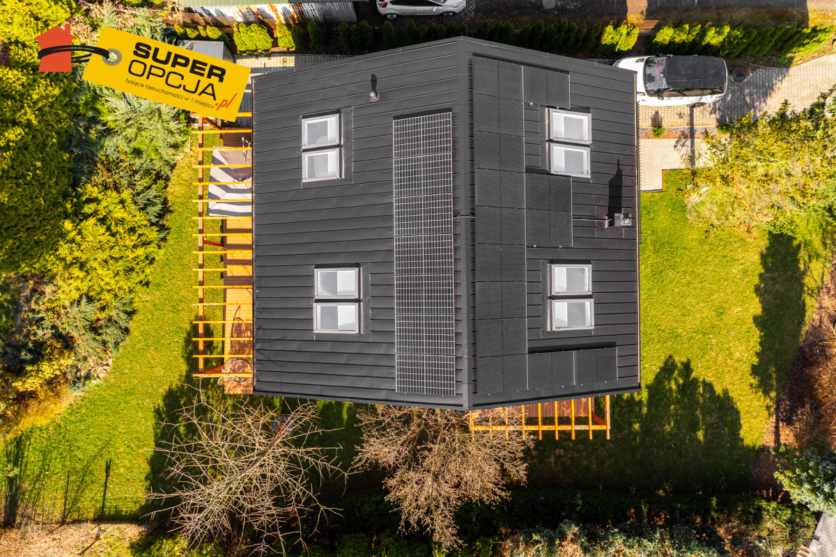 Dodatkowo dom został wyposażony w panele fotowoltaiczne, system rekuperacji, system monitoringu z kamerami oraz klimatyzację.