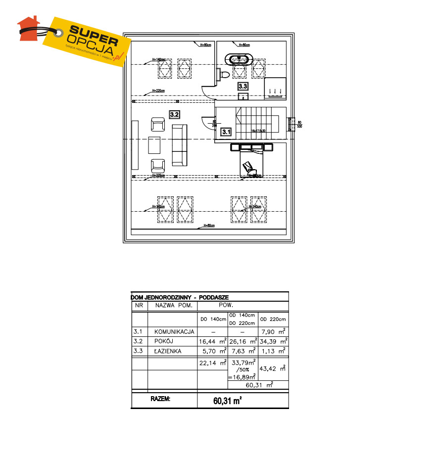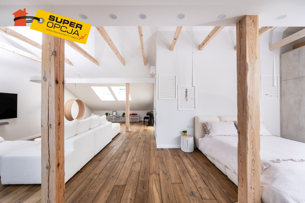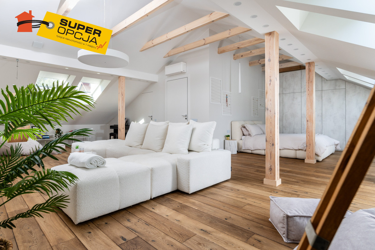 - na poddaszu znajduje się open space z częścią sypialnianą oraz pokojem dziennym, oraz dużą łazienką (istnieje możliwość podziału na dwa odrębne pokoje).