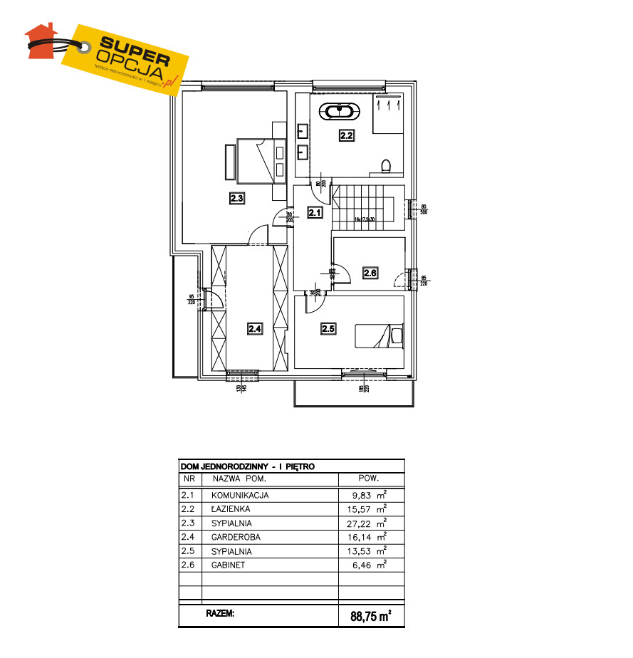 - na I piętrze znajduje się, gabinet, sypialnia gościnna, główna sypialnia z dużą garderobą oraz łazienka,