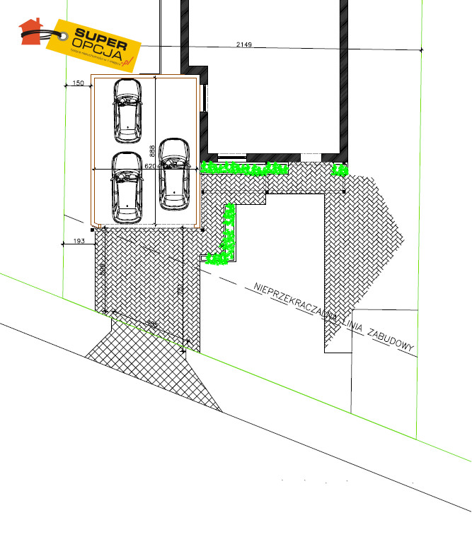 Nie został jeszcze wybudowany garaż, przygotowano koncepcję budowy garażu z opcją 3 lub 4 stanowiska (koncepcja opracowana jest zgodnie z wymogami miejscowego planu zagospodarowania działki).