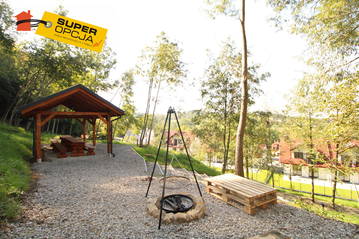 Teren osiedla jest ogrodzony, monitorowany. Każdy dom ma taras z wejściem do ogródka i dostęp do prywatnego parku.
