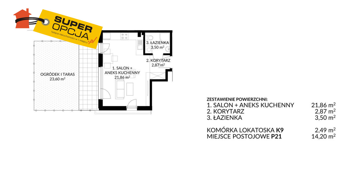 ogródek z wybrukowaną częścią tarasową- 23,6 m2
