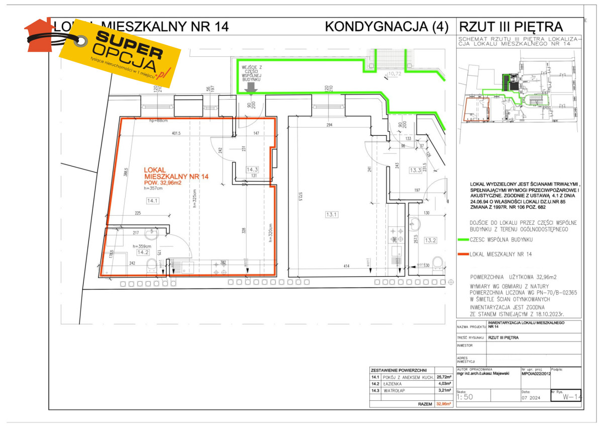 W kamienicy dostępne są również inne metraże od 30-60m.