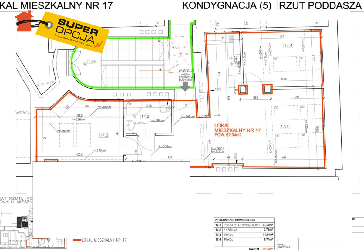 W kamienicy dostępne są również inne metraże od 30-60m.