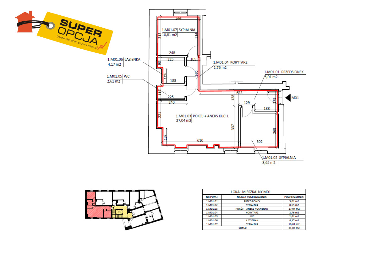 Układ mieszkania: • salon z aneksem kuchennym • 2 sypialnie • łazienka • oddzielne wc • przedpokój z miejscem na szafę • klimatyzacja • orientacja na dwie strony (od ul. Śliskiej i od wew. podwórka).