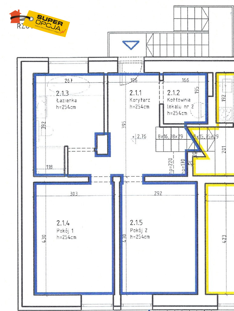 - poziom 1: idealny na dodatkowe pokoje, gabinet, przestrzeń dla gości lub zaplecze (pralnia, kotłownia), łazienka; h=2,54m