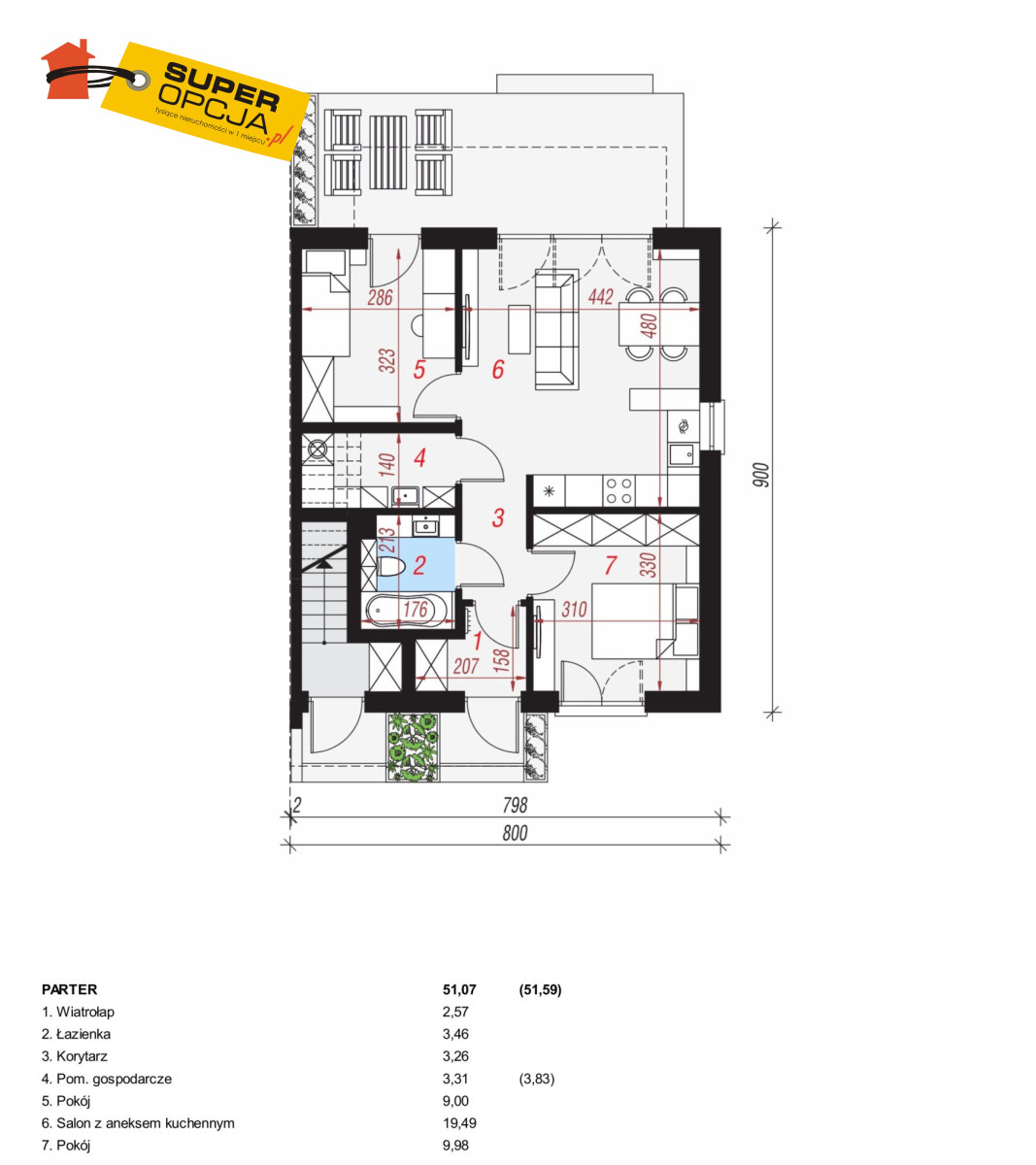 Na sprzedaż komfortowe mieszkanie o powierzchni 51,07 m² z prywatnym ogródkiem, położone w spokojnej i zielonej części Czarnochowic, w sąsiedztwie Wieliczki i z szybkim dojazdem do Krakowa.