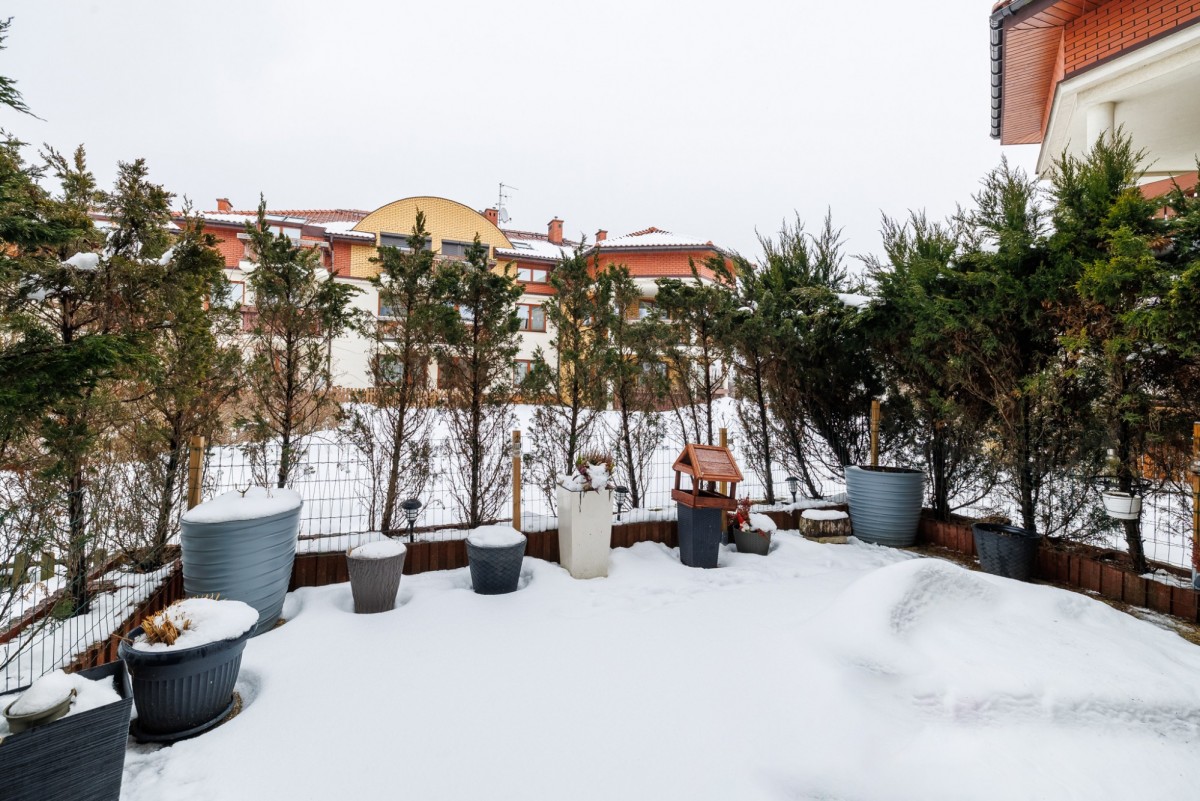 Oddzielna kuchnia oferuje dużą ilość blatów roboczych oraz miejsce na stół jadalniany. Bezpośrednie wyjście do ogrodu z dwóch pomieszczeń tworzy komfortową przestrzeń do codziennego wypoczynku, pracy zdalnej czy spotkań na świeżym powietrzu.