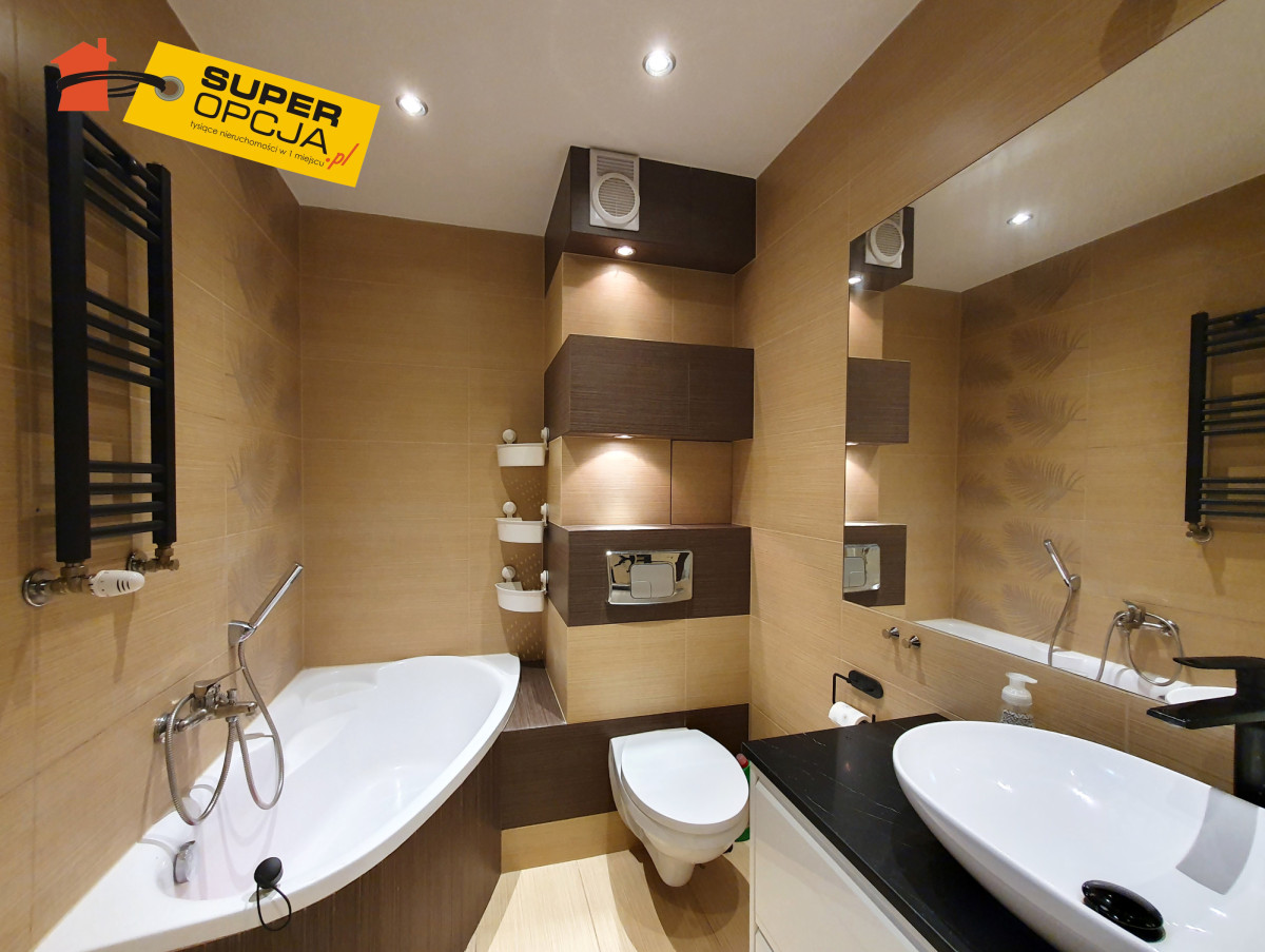 Układ mieszkania: jasny, ustawny pokój z aneksem kuchennym i z balkonem , osobny pokój , osobny pokój z balkonem, przedpokój, łazienka z wanną oraz pralką; mieszkanie jest dwustronne, ekspozycja wschód-południe; możliwość parkowania bezpłatnego na patio; ogrzewanie i ciepła woda miejskie