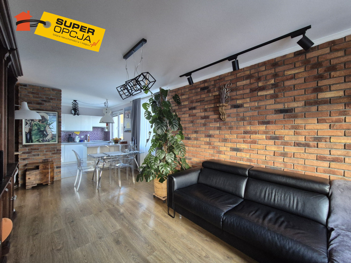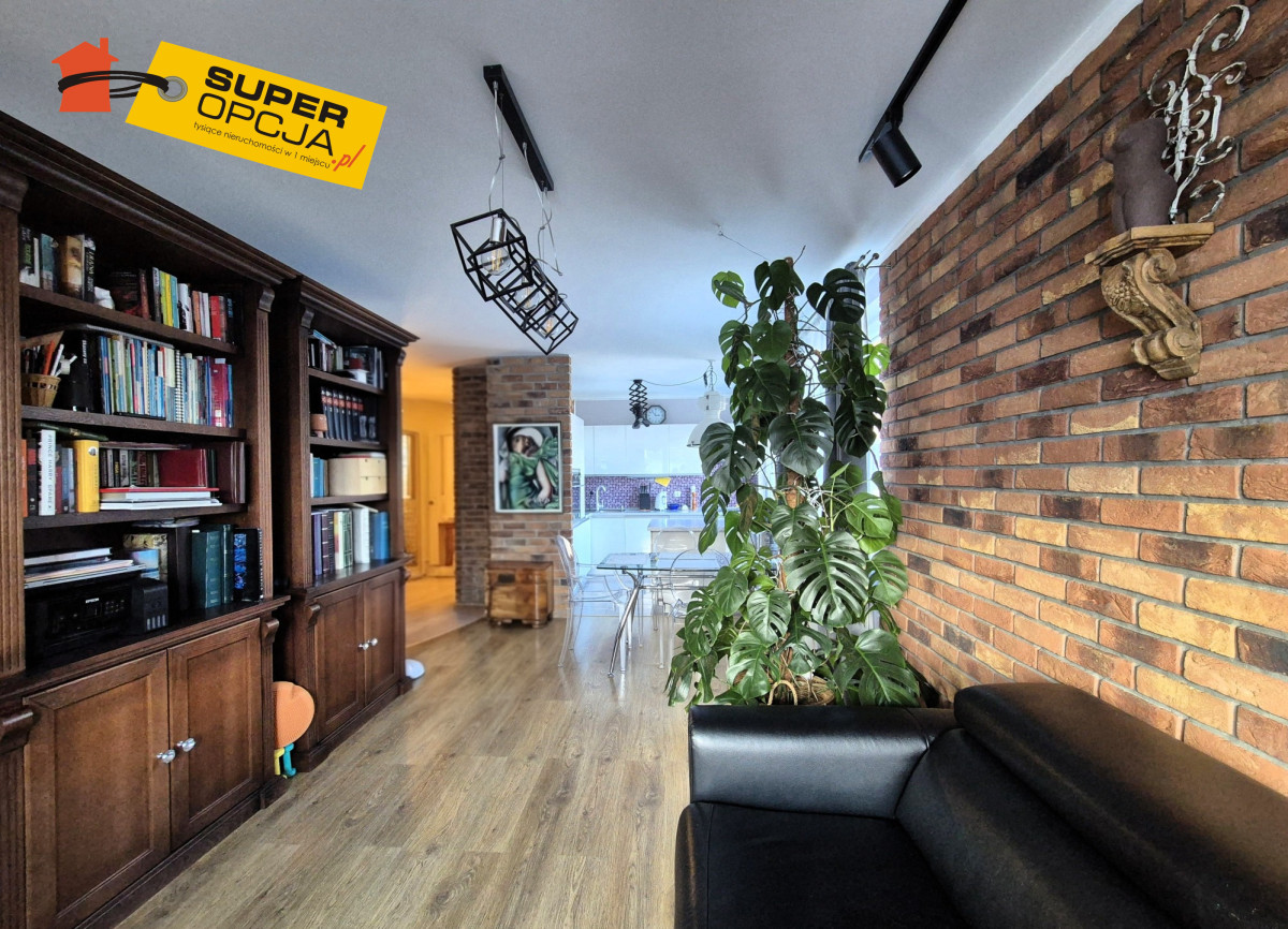 - salon z wydzielonym aneksem kuchennym (meble kuchenne w zabudowie, piekarnik, płyta elektryczna, lodówko-zamrażarka, zmywarka),