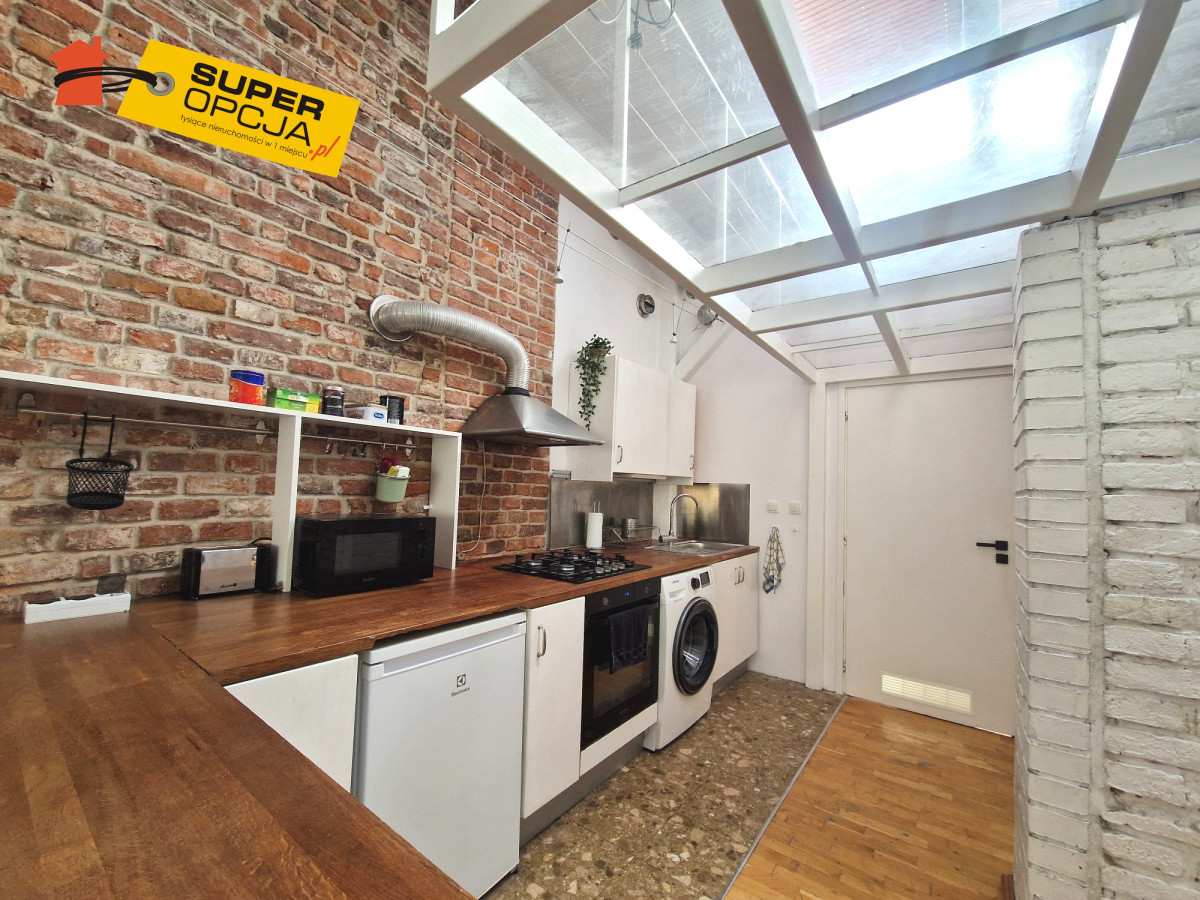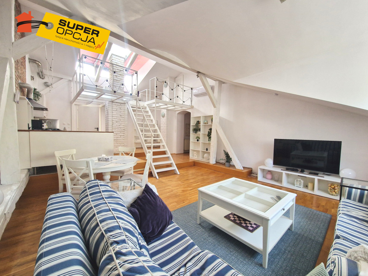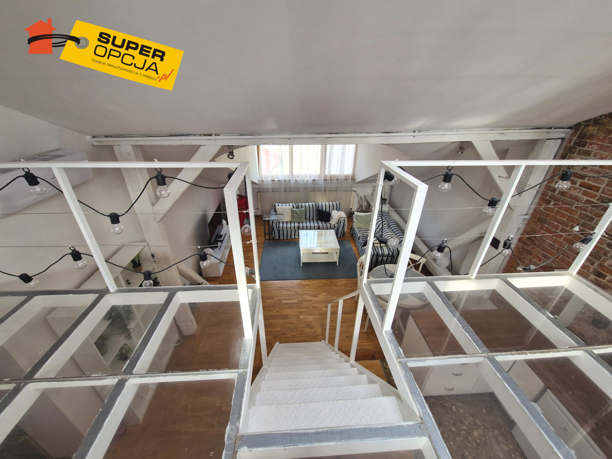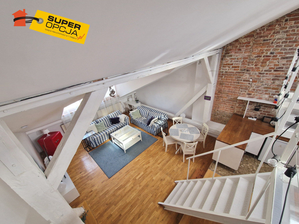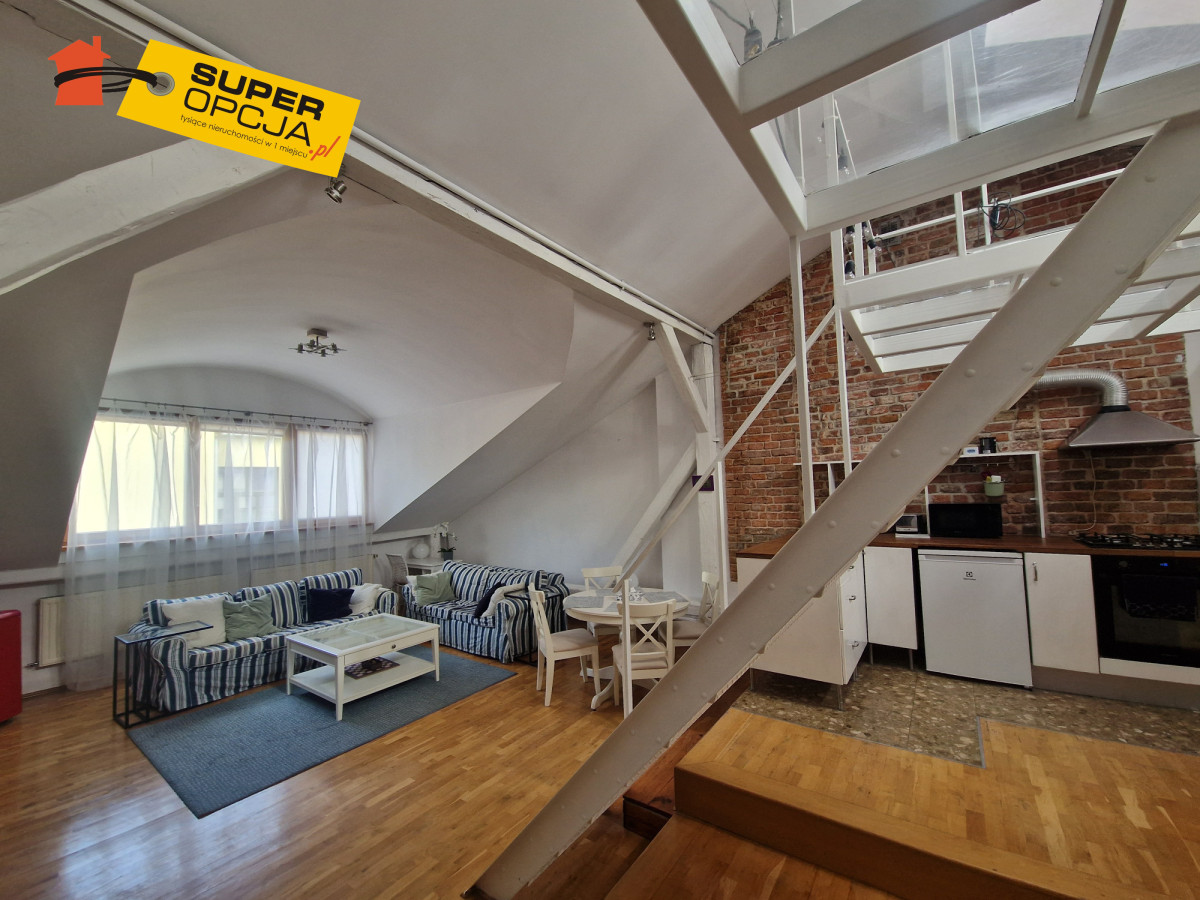 Mieszkanie zostało urządzone w stylu loftowym, charakteryzującym się otwartą przestrzenią. Składa się z następujących pomieszczeń: - 2 sypialnie doświetlone oknami dachowymi - salon z otwartą kuchnią - łazienka z prysznicem i wanną - przedpokój - antresola