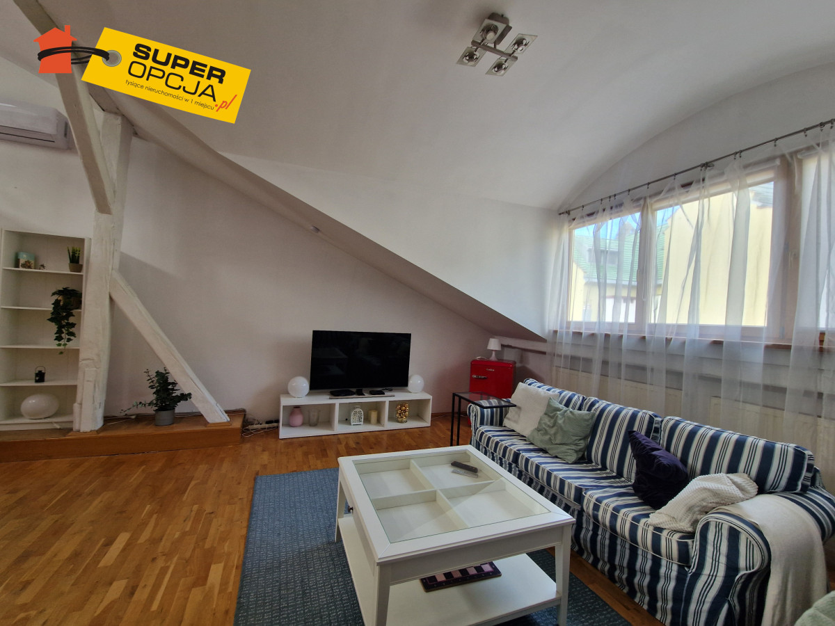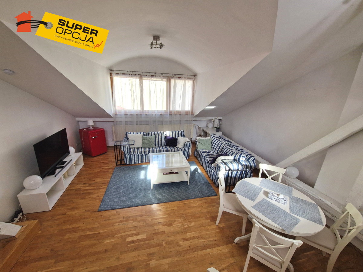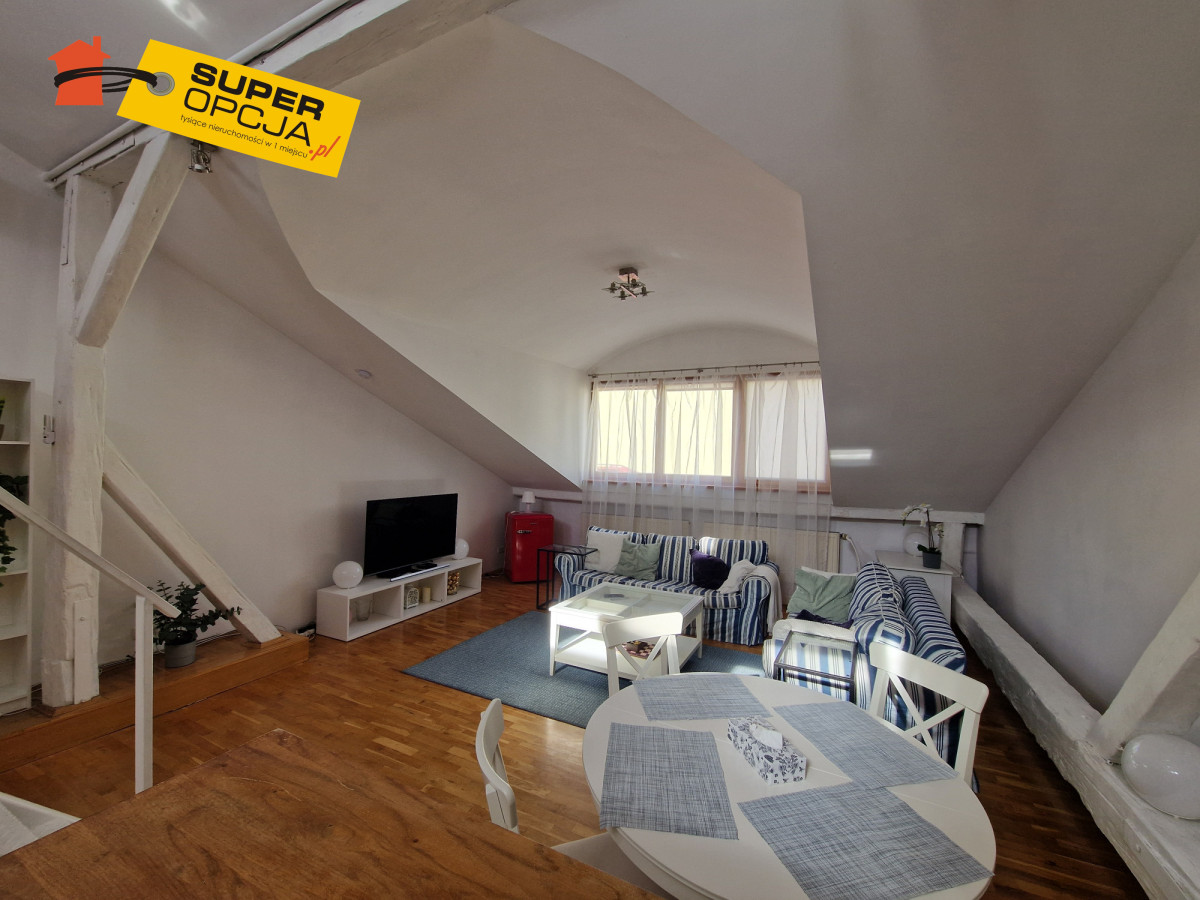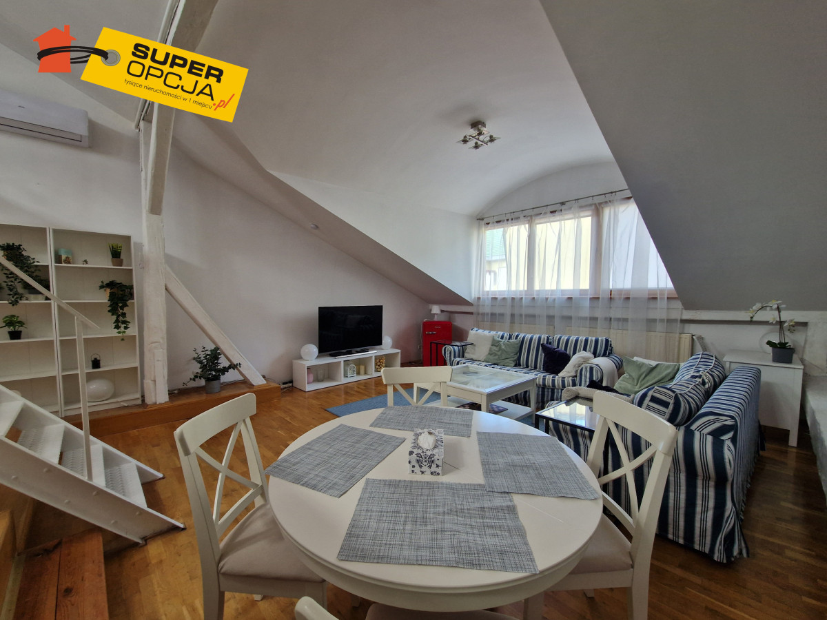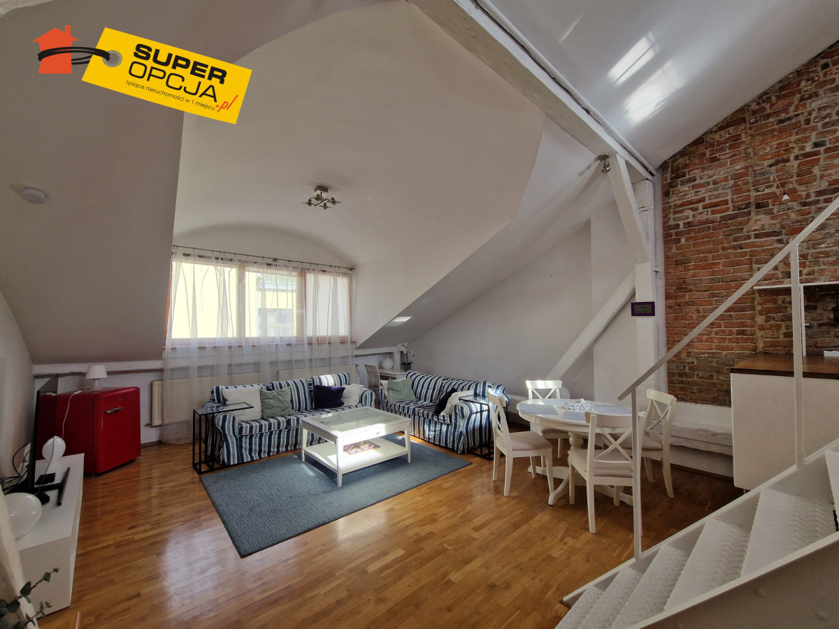 Mieszkanie zostało urządzone w stylu loftowym, charakteryzującym się otwartą przestrzenią. Składa się z następujących pomieszczeń: - 2 sypialnie doświetlone oknami dachowymi - salon z otwartą kuchnią - łazienka z prysznicem i wanną - przedpokój - antresola