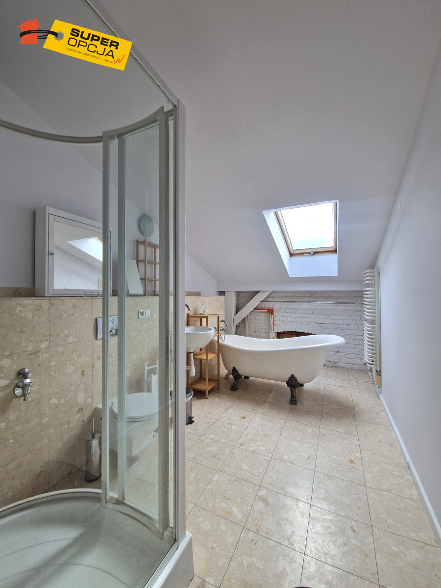 The apartment is decorated in a loft style, characterized by an open-plan space. It consists of the following rooms: - 2 bedrooms - living room with an open kitchen - bathroom with a shower and bathtub - hallway - mezzanine